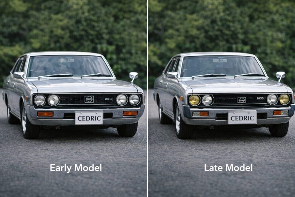 本記事では、当時のカタログ情報や公式資料を基に、セドリック330型の前期・後期の変更点を整理し、外観・内装・装備からの見分け方、さらにグレード構成の違いまでを体系的に解説します。