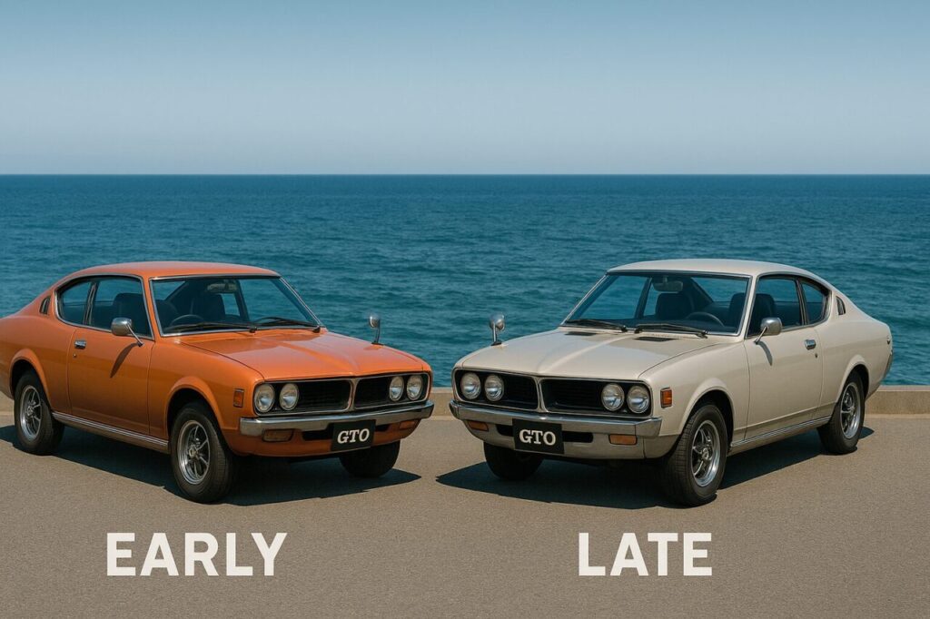資料を見ると、前期は少し素朴で軽さのある表情なのに対し、後期は“整ったスポーツクーペ”としての迫力が強まり、同じGTOでも印象が大きく変わるのが面白いですね。