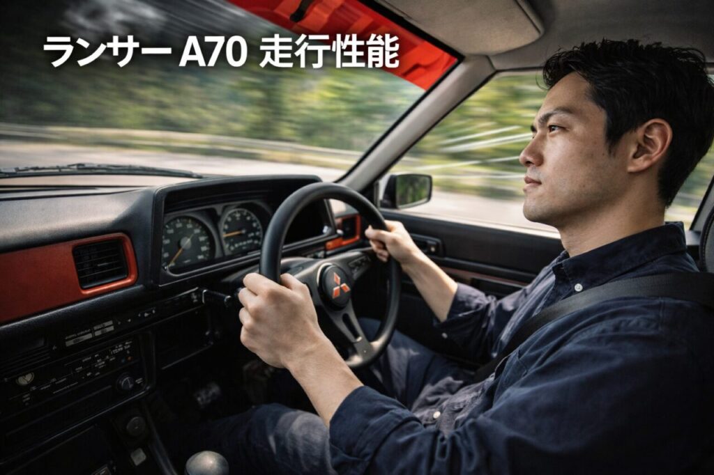 ランサー A70の走行性能と乗り味を整理すると、この車は「速さ」や「スポーティさ」を競うための存在ではないことがはっきり見えてきます。