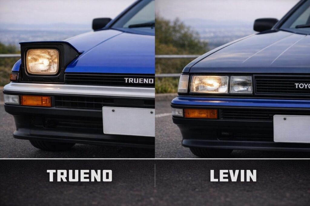 トレノとレビンの違いを一言で表すなら、フロントヘッドライトの構造差に集約されます。