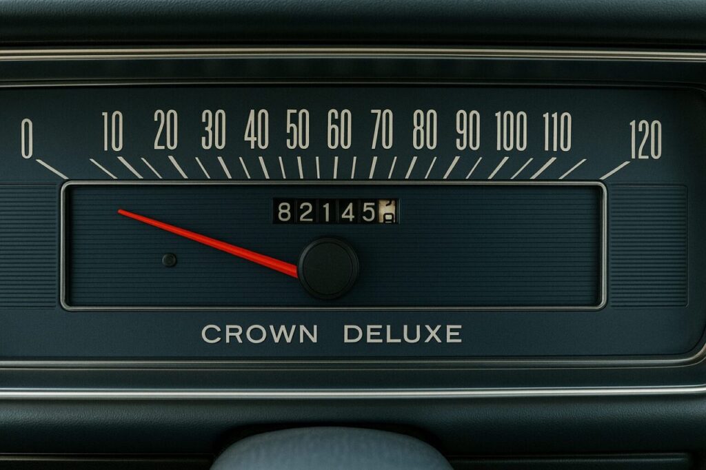 特に北米仕様ではサイドマーカー・厚バンパー・mphメーターなど、日本仕様とは大きく異なる要素が追加され、クラウンMS50が“世界市場へ挑戦していた時代の証拠”として大変興味深い存在。