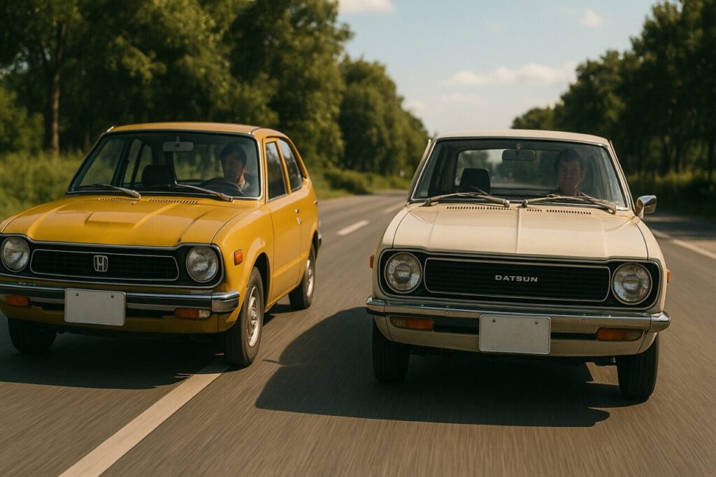 ホンダ・シビックSB1(初代:1972〜)と、日産サニーB110(3代目:1970〜)は、1970年代前半の国産小型車を代表する二台です。